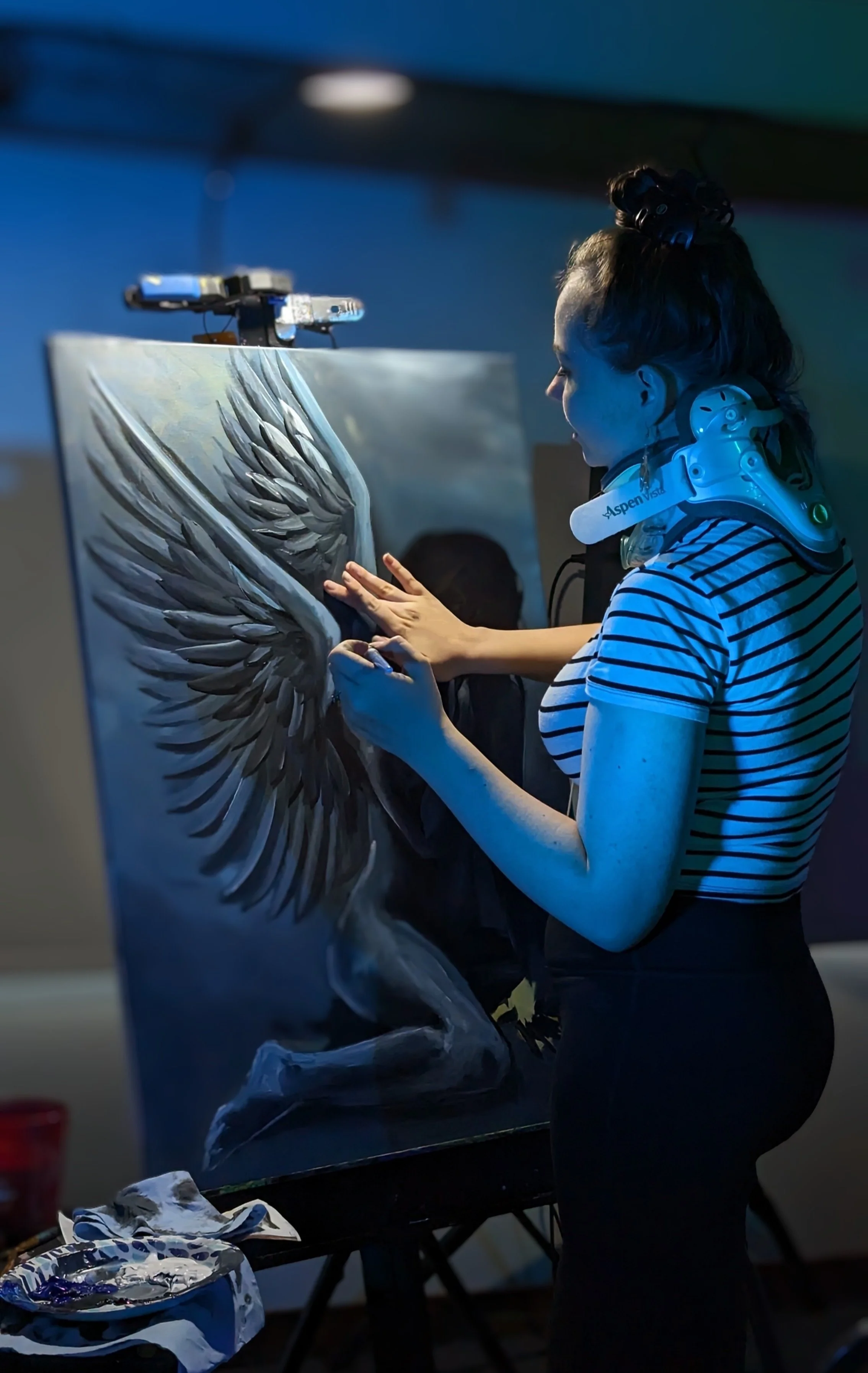 Giusiana Prosser is an internationally collected, Seattle area based, multi-media artist whose work is largely inspired by her experiences living life with an incurable illness. Since early childhood she has struggled with multiple rare diseases and chronic illnesses. In 2017, her freshman year of high school, she was diagnosed with Complex Regional Pain Syndrome, In the following years she received the diagnoses of rare genetic neuromuscular and connective tissue disorders along with multiple comorbid conditions, affecting her heart, muscles, spine, immune and nervous systems and more. All are incurable and lifelong conditions.